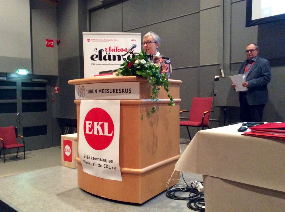 I slutet av 2014, var antalet pensionstagare i Finland 1,5 miljoner. Samma år, var, var tionde person över 65 år och en av fem personer i åldrarna över 75 beroende av reguljär service. Det behövs nu investeringar i hemtjänst och mer personal.